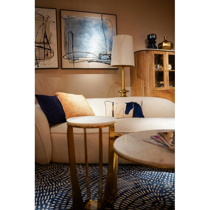 Material: Överdrag 100% polyester (sammetlook) med dekor i polyuretan och kopparpläterat stål, fyllning 100% polyester
