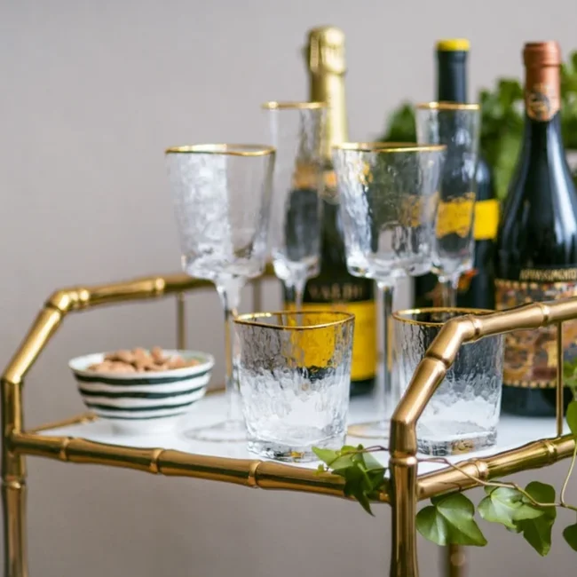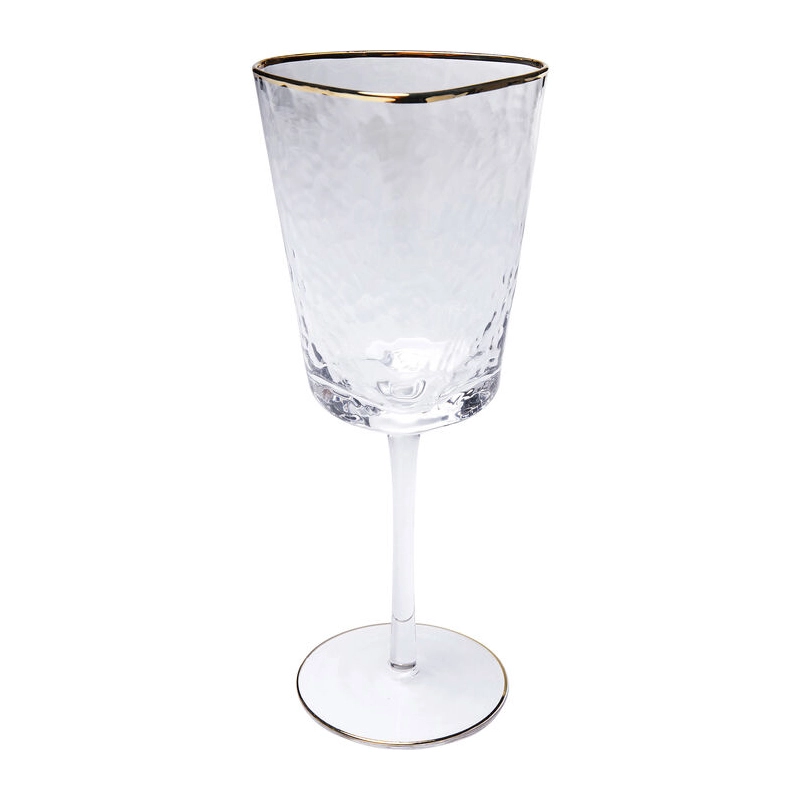 - Lyxigt, handgjort rödvinsglas med guldkant