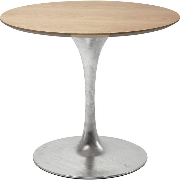 Designa ditt runda matbord med våra bordsunderreden i trumpetfotsmodell och runda bordskivor i serien Choice. Denna bordskiva har ett ytskikt i varm ekfanér. Som matbord sitter man bekvämt 3 och max 4 personer kring bordet.