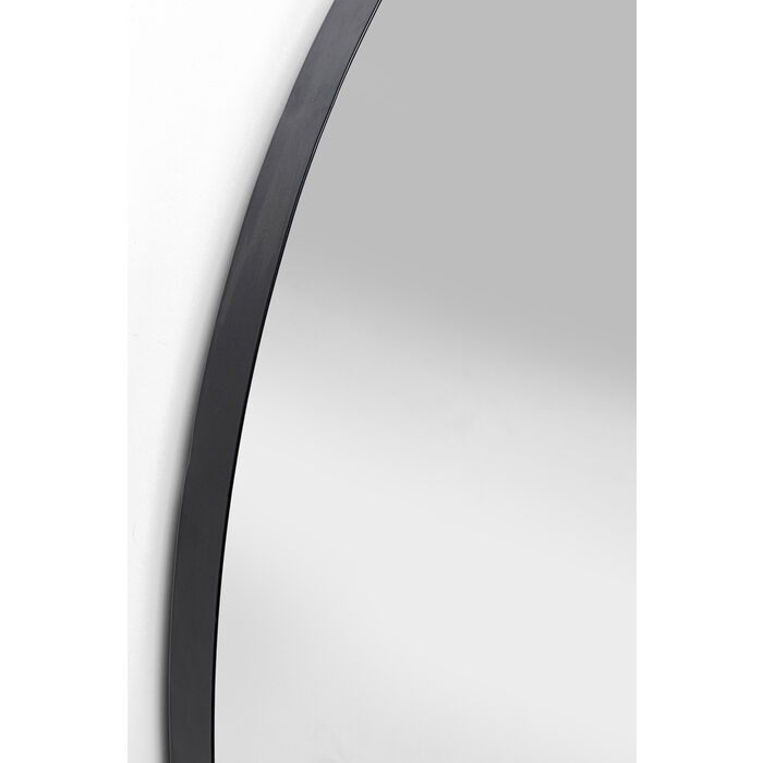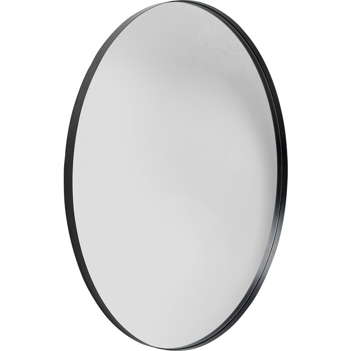 En stor rund spegel med en smal svart profilerad ram - en modern klassiker.