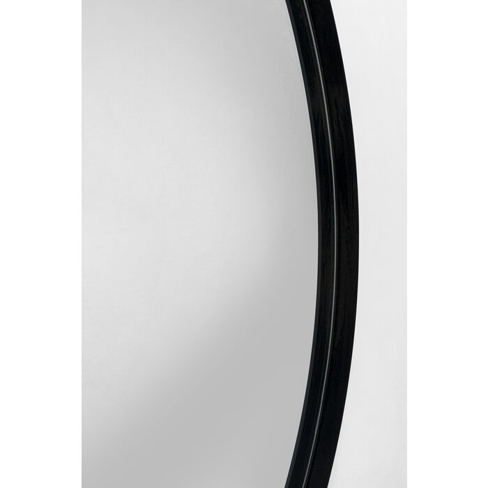 - Med sitt rena utseende är denna runda spegel med svart ram en spännande kontrast till naturliga trämöbler.