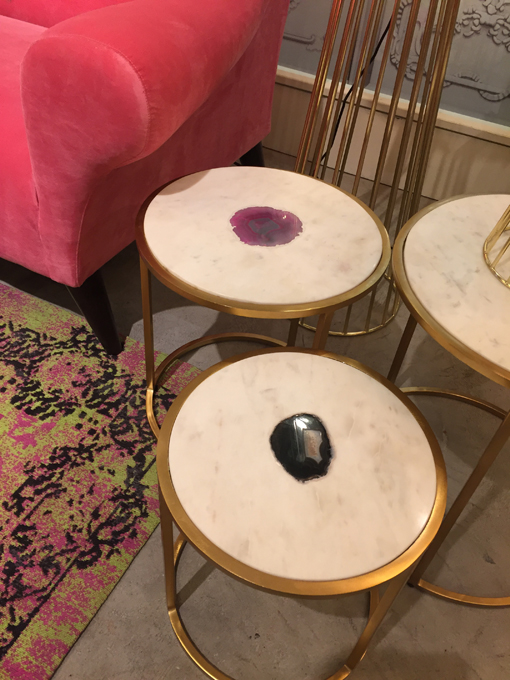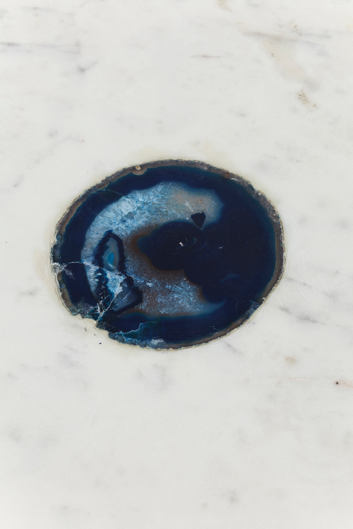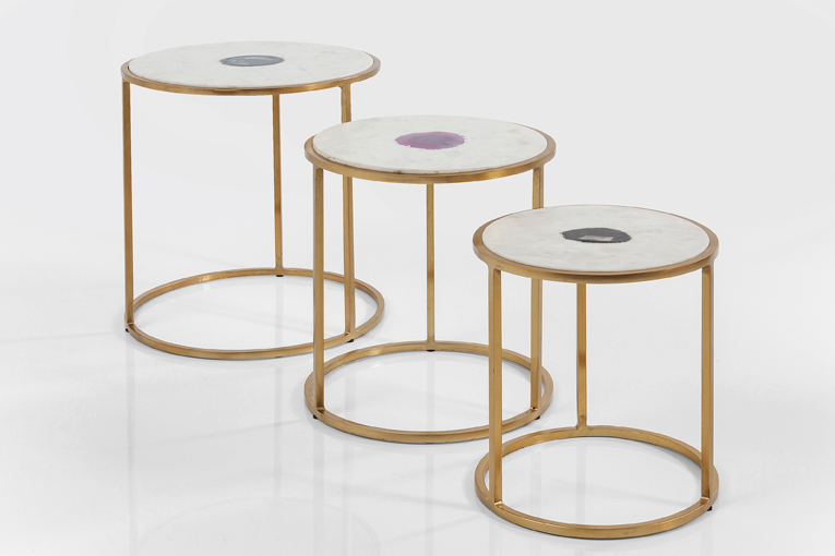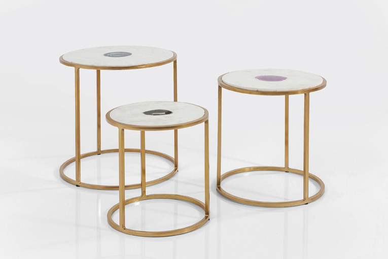 Tre små runda bord - alla med unik agatsten infälld i varje marmorskiva