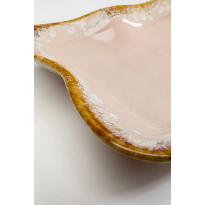 Rosa serveringsfat i keramik med organisk form och handgjord känsla.