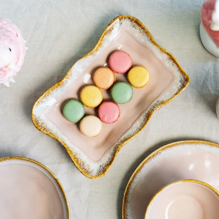 - Keramiskt serveringsfat i mjuk rosa nyans