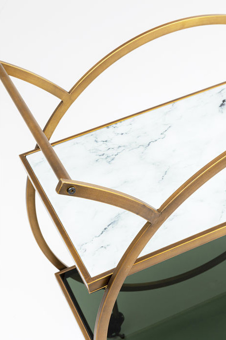 Elegant serveringsvagn i mässings- och marmorlook med en touch av retrodesign.