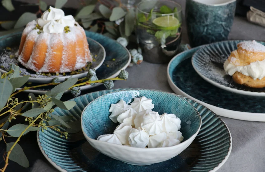 En vacker servis i blå keramik med skiftningar i nyans och struktur. Provensalsk inspiration!