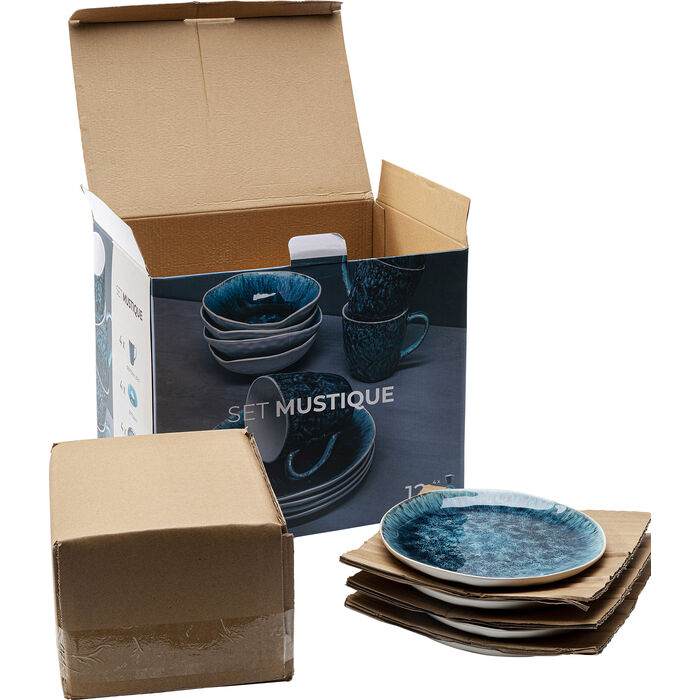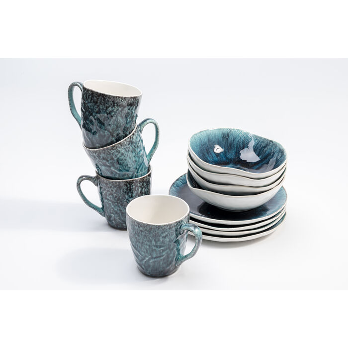 Servisen består av 12 delar - fyra koppar, fyra skålar och fyra assietter.