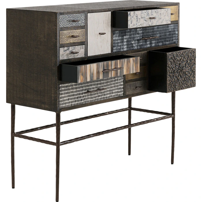 Karaktärsfullt sideboard med 13 lådor i mix av naturmaterial.