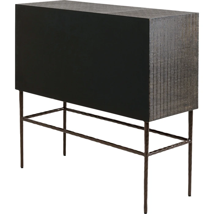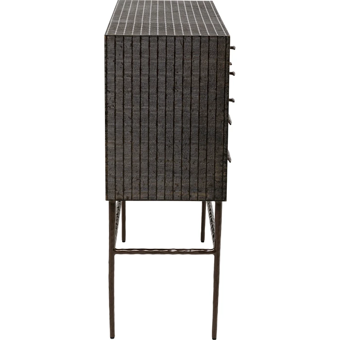 Den harmoniska färgpaletten i naturliga nyanser gör sideboardet lätt att kombinera i olika miljöer – från hall och sovrum till vardagsrum. De smala benen i svart stål ger ett elegant lyft och stabil konstruktion. En möbel som fungerar lika bra som förvaring som ett konstnärligt statement.