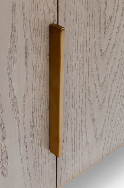 Denna kompakta skänk i ljust trä passar såväl moderna inredningsstilar som klassiska och eleganta rum. Du kan enkelt ge den en diskret, glamorös touch med fina inredningsdetaljer gjorda av glas eller skimrande metall. Det värdefulla ekträet i kombination med minimalistiska handtag och ramar ger ljushet in i rummet. Möbeln passar lika bra i vardagsrummet som skänk i matsalen eller som stor byrå till sovrummet: skänkar, highboards och lowboards är en visuell höjdpunkt och löser många inredningsutmaningar.