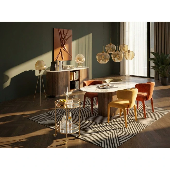 Sideboard Ruben 180x76 cm är en modern skänk som kombinerar stilren design med generös förvaring. Den långa och eleganta formen gör den perfekt som förvaringsmöbel i vardagsrummet, matsalen eller hallen. Med sin minimalistiska design fungerar den både som praktisk möbel och som en dekorativ bas för inredningsdetaljer.Designen kännetecknas av en sofistikerad materialkombination där glaserad stengods möter pulverlackerat stål och MDF. Ytan ger ett exklusivt och modernt uttryck samtidigt som konstruktionen är stabil och hållbar. Den rena designen gör att sideboardet enkelt kan integreras i olika inredningsstilar – från modern minimalism till industriella miljöer.
