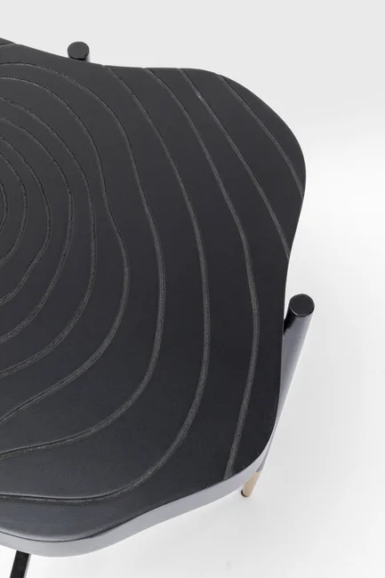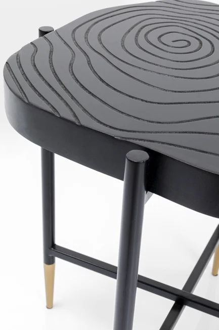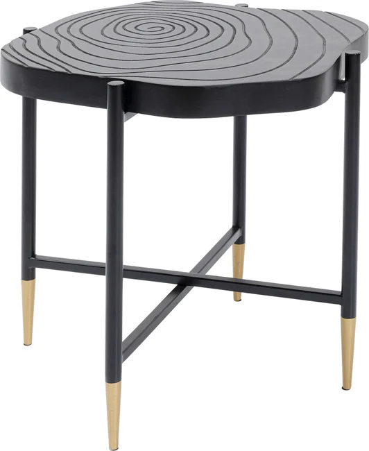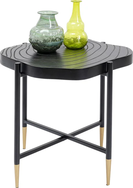 Sidobord i svart med spännande mönstring på bordskivan. Ben i filigran och mässingdetaljer.