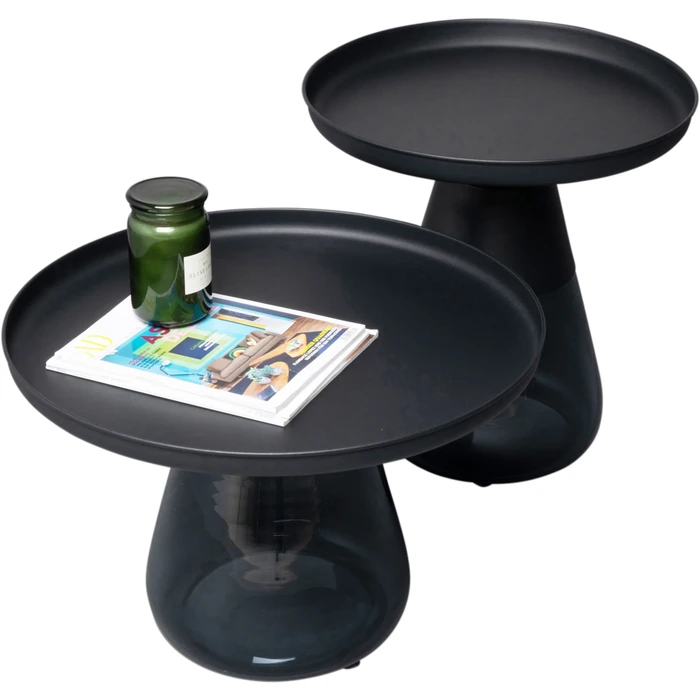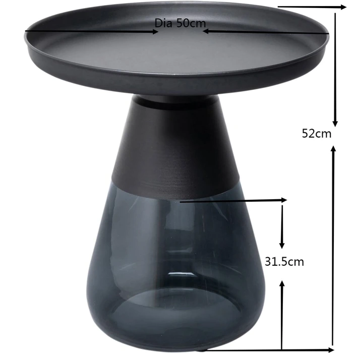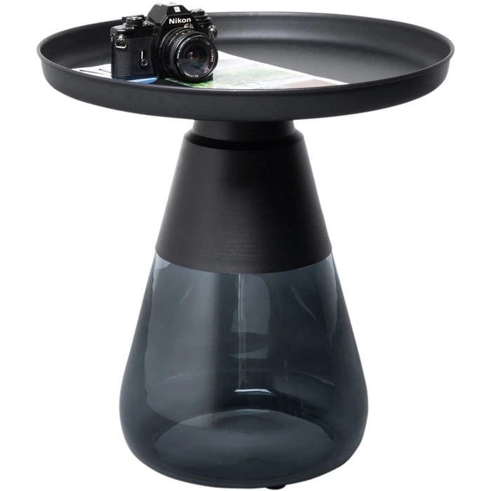 Sidobord Bottiglia Smoke Ø50 cm är ett elegant sidobord i rökfärgat glas som kombinerar modern design med funktionell användning. Den runda formen och den transparenta basen skapar en lätt och luftig känsla, vilket gör bordet till ett stilfullt komplement bredvid soffan, fåtöljen eller som en dekorativ detalj i hemmet.Designen kännetecknas av den unika glasbasen som ger en svävande effekt samtidigt som den erbjuder stabilitet. Bordsskivan i lackerat stål med upphöjd kant ger en praktisk och slitstark yta som är enkel att hålla ren. Kombinationen av glas och metall skapar ett exklusivt och tidlöst uttryck som passar både moderna och mer sofistikerade inredningsstilar.
