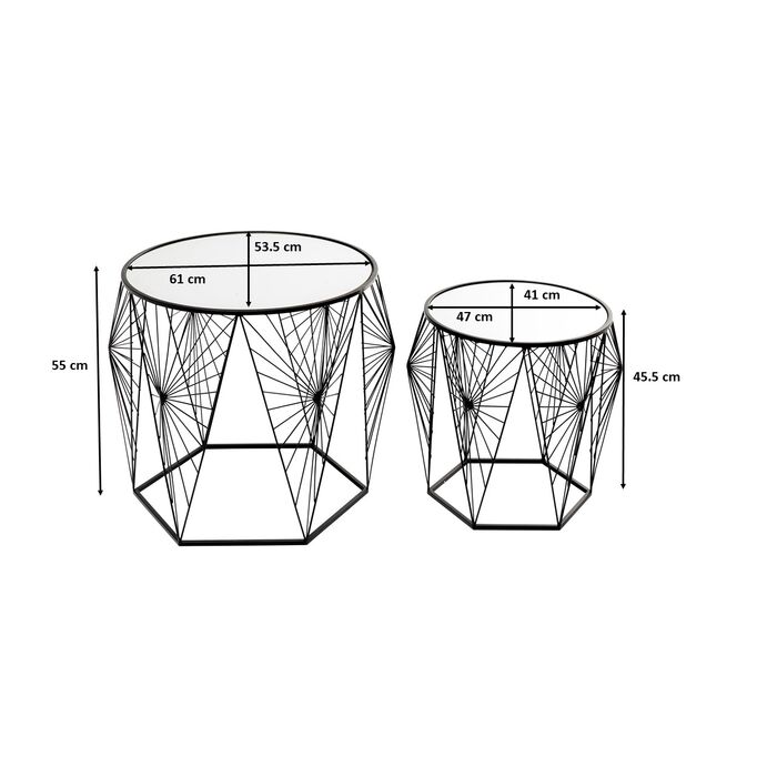 Sidobord Cobweb - Glas Svart, 2 st bord (set)