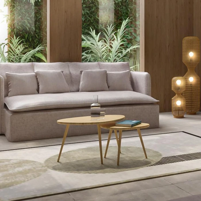 Placera solo eller skjut in det mindre under det större för flexibel yta i vardagsrum eller sovrum. Naturlig, tidlös design som håller över tid.