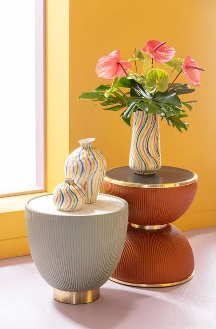 Ett soffbord eller sidobord kan vara en spelväxlare för utseendet i ett rum. Fördelen är att endast en liten investering kan åstadkomma storverk i vardagsrummet och fräscha upp utseendet på nolltid. Så är fallet med modellerna från Modern Retro, det röda lilla bordet har en midjedesign på en delikat bas och just denna modell kommer garanterat att erövra retrofansens hjärtan. Detta beror också på den unika kroppen, som är täckt med ett quiltat tyg i läderlook och ser bra ut med sin livliga struktur.