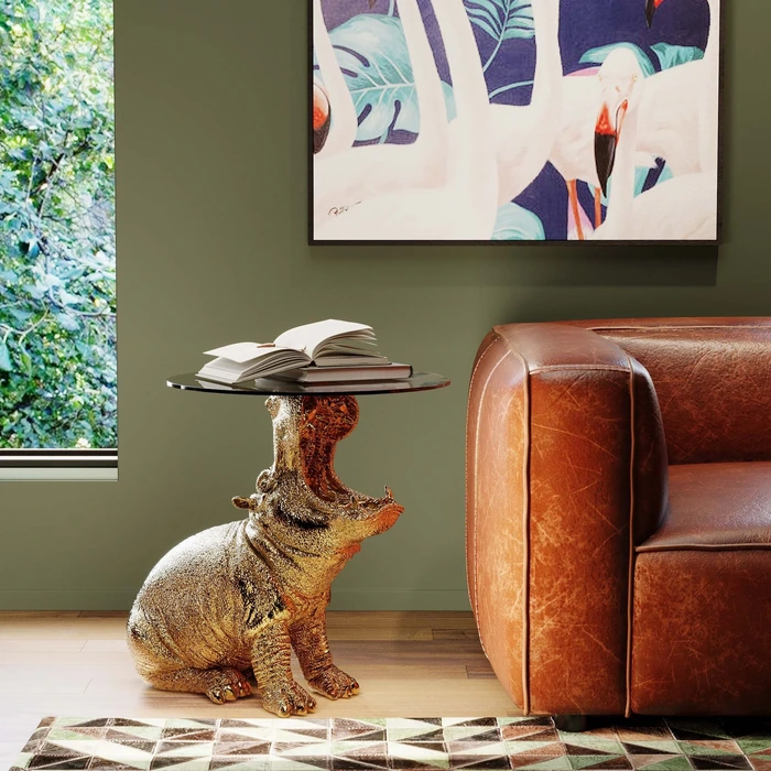 - Sidobord med skulptural flodhäst i guldfinish