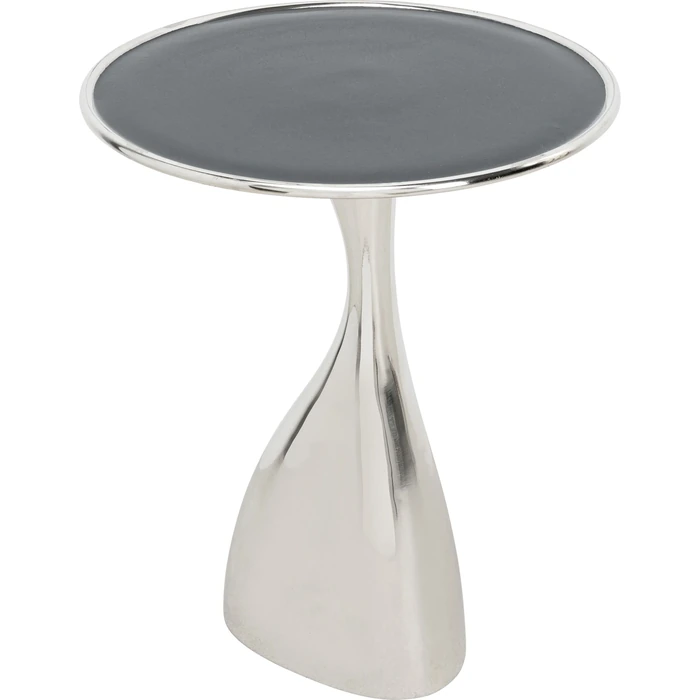 Modernt sidobord i silver med skulptural design.