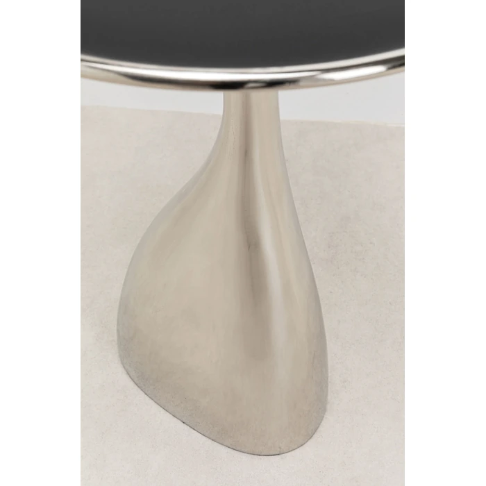 Sidobord Spacey Silver Ø36 cm är ett modernt sidobord i metall som kombinerar futuristisk design med praktisk funktion. Den blanka silverfinishen och den skulpturala formen gör bordet till en iögonfallande detalj i vardagsrummet, sovrummet eller hallen. Det runda formatet gör det perfekt som avlastningsbord bredvid soffan eller fåtöljen.Den unika designen i aluminium med nickelpläterad yta ger bordet ett exklusivt och samtida uttryck. Den glänsande ytan reflekterar ljus och skapar en dynamisk känsla i rummet, vilket gör det till ett perfekt val i moderna och minimalistiska miljöer. Den handgjorda konstruktionen bidrar dessutom till ett mer levande och unikt utseende.