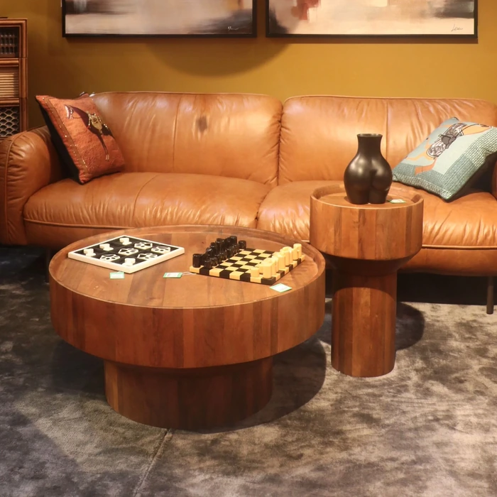 Sidobord Tessa Ø35 cm är ett kompakt och stilrent bord i massivt mangoträ. Den runda formen och den naturliga ådringen skapar ett varmt uttryck som passar både moderna, rustika och skandinaviska hem. Den lackerade ytan framhäver träets struktur och gör bordet slitstarkt och enkelt att sköta om.