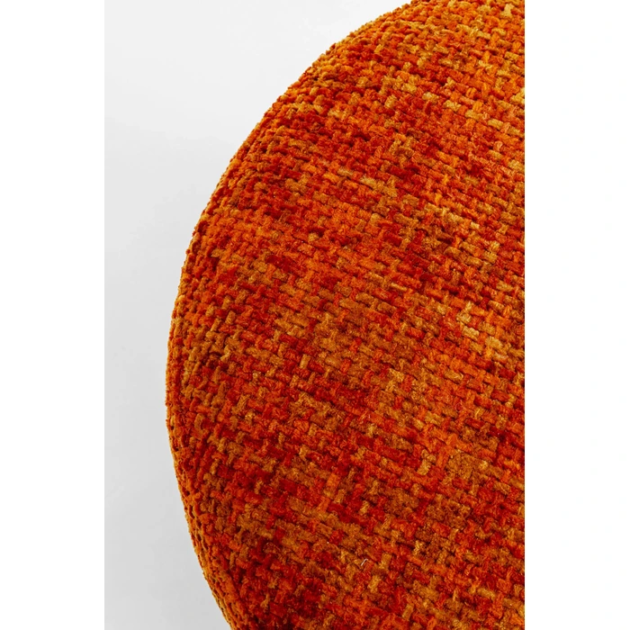 Rund sittpuff i melerat orange tyg med elegant silverfärgad bas.