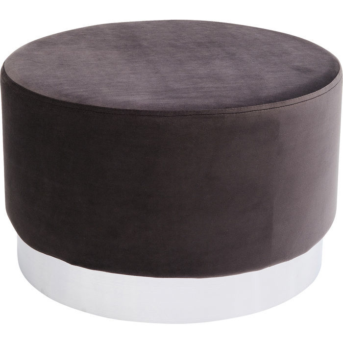 En stor, rund sittpuff i mustig mörk grå sammet med dekorativ och praktisk list i silver. Den här sittpuffen finns även i puderrosa samt i flera färger av den mindre modellen. Sammetspuffen är mycket välgjord och ger ett exklusivt intryck till ett bra pris. Material: Pulverlackat stål, OSB-skiva, skumfyllning, sammet i polyester. Max belastning 120 kg. Mått: Höjd 35 x diam. 55 cm. Obs, färgen kan skilja något så beställ gärna tygprov.
