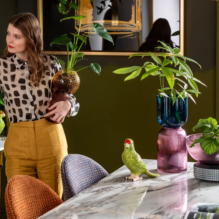 Den fungerar lika bra med blommor som ensam som ett konstobjekt. Placera den på ett sidobord, en hylla eller som mittpunkt på ett matbord för att skapa en levande och konstnärlig atmosfär i rummet.