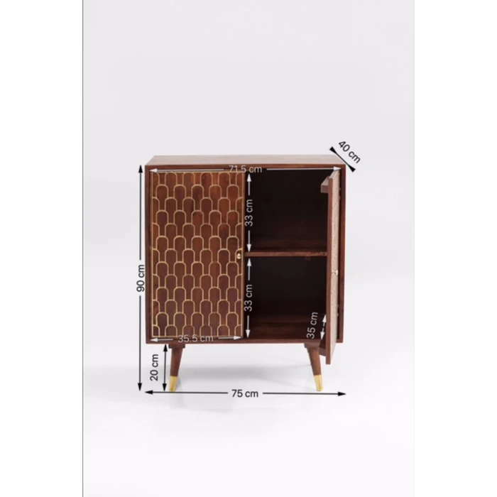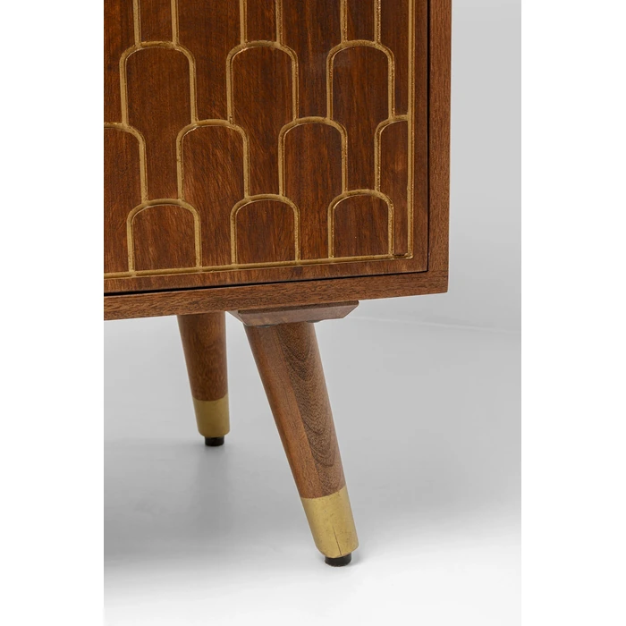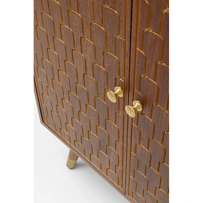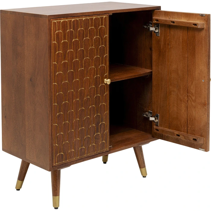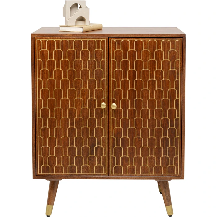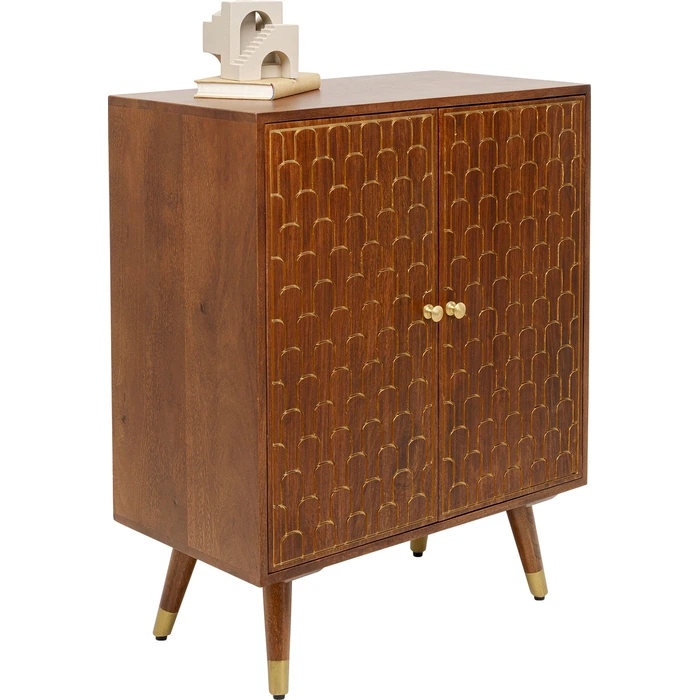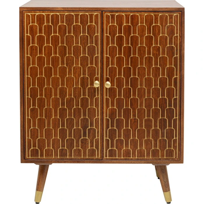 Skåp Malou Muskat i trä, elegant förvaring med orientaliska detaljer och två dörrar.