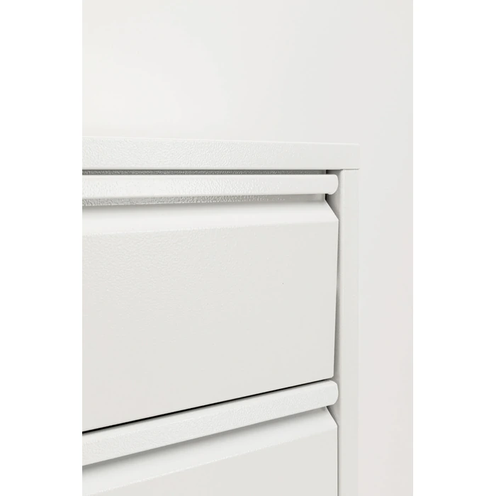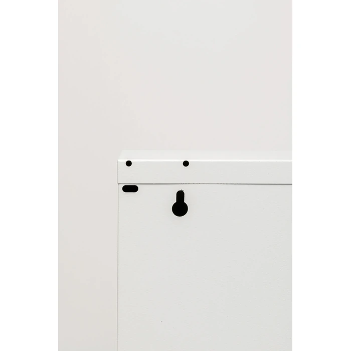 Platsbesparande skoskåp i pulverlackat stål med tre tipplådor och en övre låda för småsaker. Perfekt i hallen där djupet måste vara smalt.