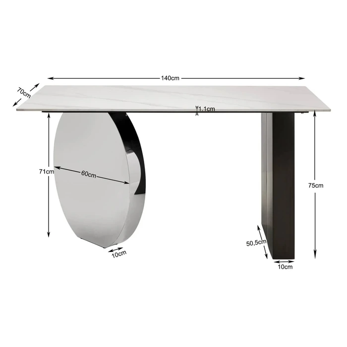 Modernt skrivbord 140x70 cm med polerad stålram och elegant stengodsfinish.
