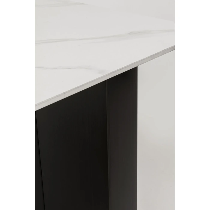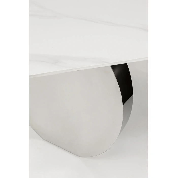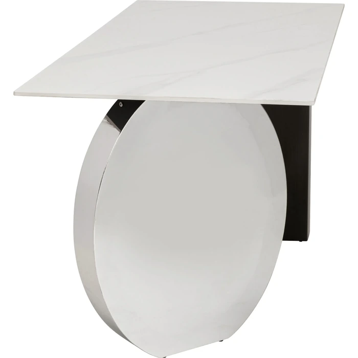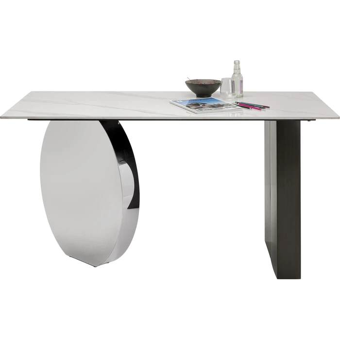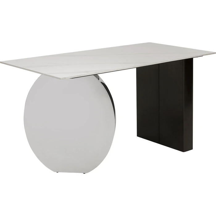 Skrivbord Demi 140x70 cm är spektakulärt, elegant, modernistiskt och funktionellt bord med ett avskalat, modernt uttryck. Den polerade ramen i rostfritt stål ger en exklusiv känsla och skapar en luftig siluett, medan bordsskivan med stengodsfinish ger en sofistikerad yta som passar lika bra i hemmakontoret som i ett stilrent arbetsrum.