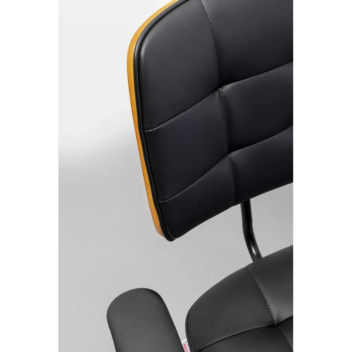 Snurrbar skrivbordsstol i svart läderlook med mjuk stoppning – smidig och lätt att kombinera i hemmakontoret.