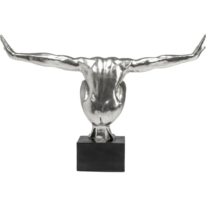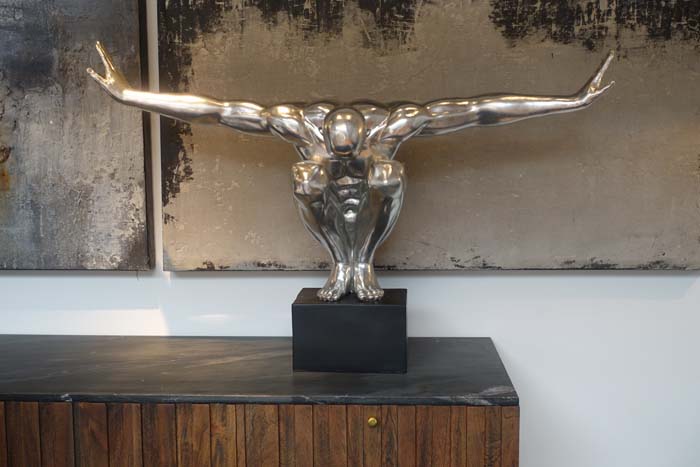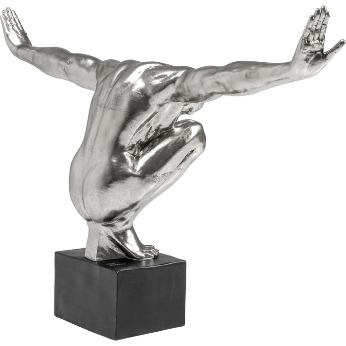 En magnifik skulptur av en atlet i silver som vilar på ett block av svart marmor. Skulpturen är den största i serien av våra atletskulpturer och den finns även i guldfinish -Skulptur Atlet Guld XL. Det här är verkligen en eye-catcher i både det privata hemmet och i en offentlig miljö.