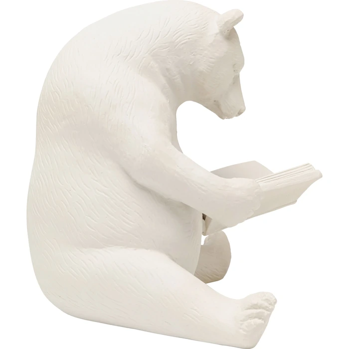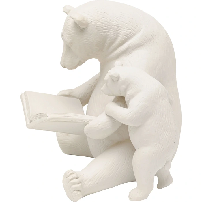 Dekor med björn som berättar en saga, perfekt på hyllan eller byrån. Den mjuka greigefärgen gör figuren lätt att kombinera med naturmaterial och varma toner.