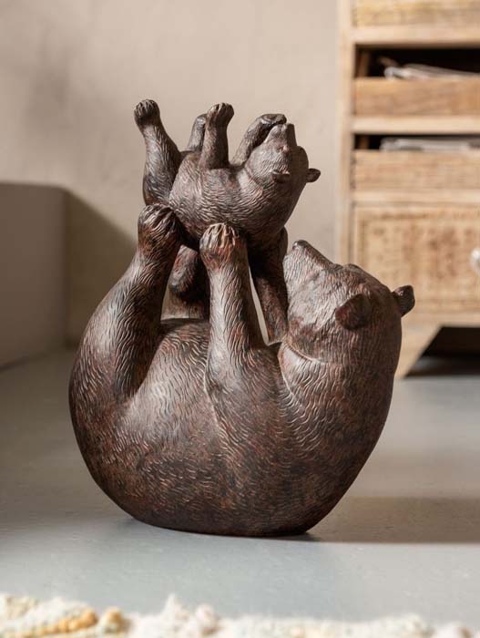 Ännu en härlig skulptur med familjen Björn, här i akrobatisk lek. Björnskulpturen är hela 29 cm hög och trivsam eye-catcher i ett fönster, en hylla eller på golvet. I serien finns flera charmiga björnar och för dig som gillar inredningsdetaljer med djur - se fler i vårt Animal Kingdom. Handgjord. Material: polyresin. Mått: höjd 29 x bredd 26,5 x djup 3,5 cm. Vikt: 1,2 kg.