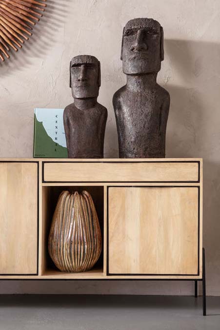 En hög och pampig skulptur inspirerad av de världsberömda stenstatyerna på Påskön. Skulpturen är handgjord och har en vacker keramisk yta. Den är fin i grupp med den mindre varianten - ett intressant dekorobjekt som kan bli föremål för lärorika samtal om de över 900 stycken statyerna på Påskön.