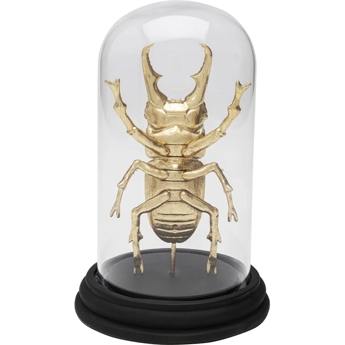 Skulptur av Hercules-skalbagge under glaskupa – dekorativ 20 cm prydnad i guld och svart med exklusivt uttryck.