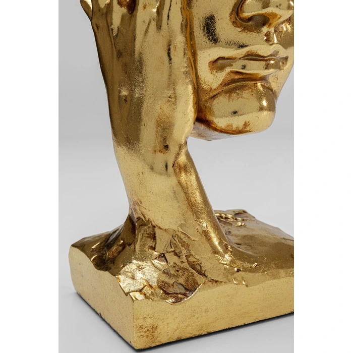 Skulptural dekorfigur i guld – ett poetiskt huvud som ger djup och elegans åt hylla eller sideboard.