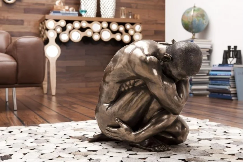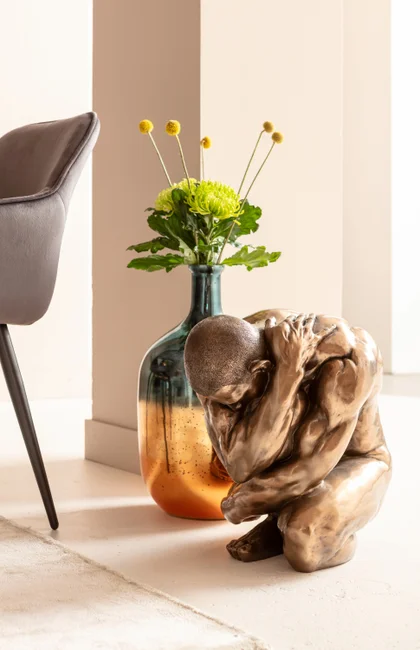 Denna tidlösa och imponerande skulptur i brons är full av karaktär och tilltalar med sin muskulösa och estetiska form. Den varma nyansen av brons ger dekorationen ett ädelt utseende och är ett intressant konstverk som väcker tankar. Skulpturen föreställer en atletisk man i en sammanbiten, introspektiv posering som ger ett kraftfullt uttryck då mannen utstrålar både styrka och sårbarhet. Med sin realistiska detaljrikedom blir dekoren ett elegant tillskott till ditt vardagsrum, kontor eller hemmagym. Låt skulpturen väcka tankar och inspirera till reflektion i ditt hem.