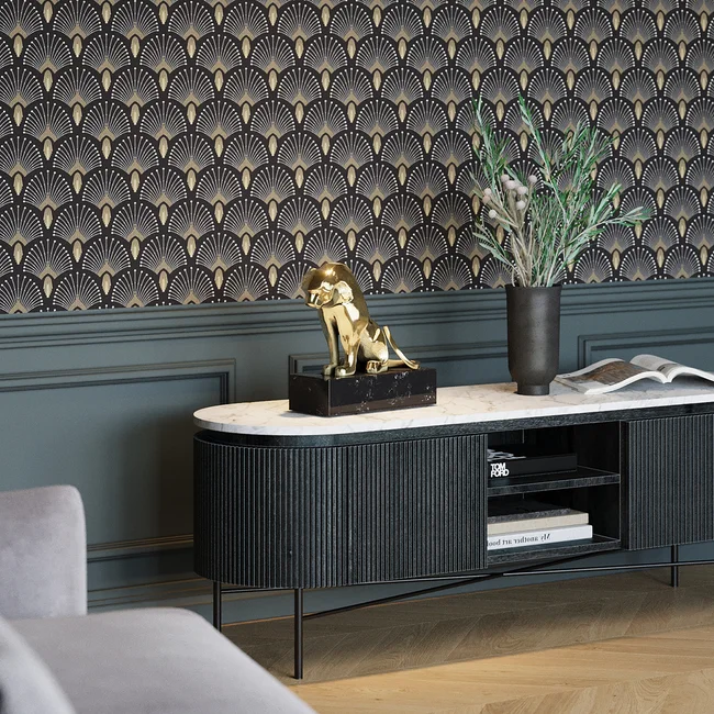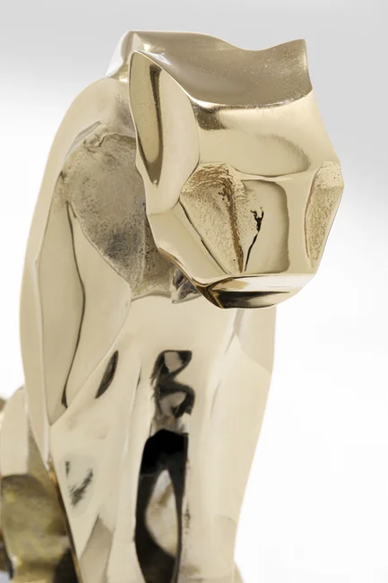 Skulptur Lejon - Guld/Svart Marmor, 34cm
