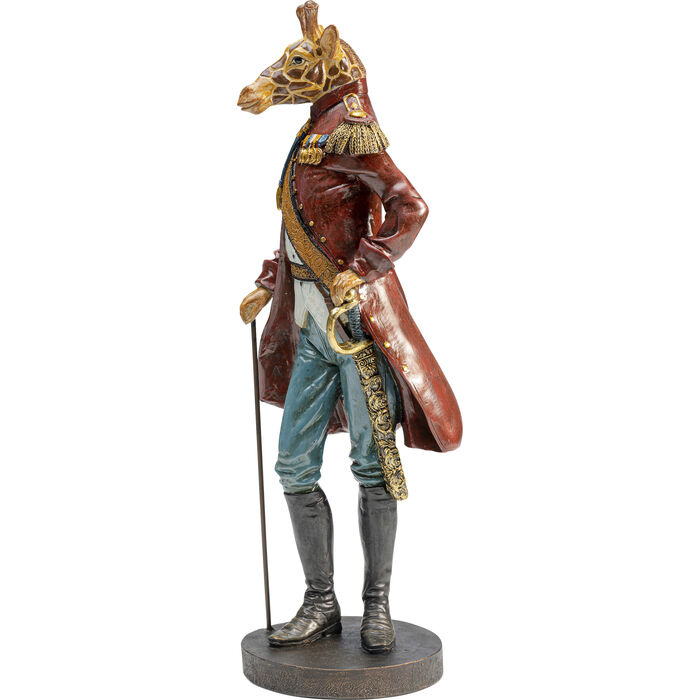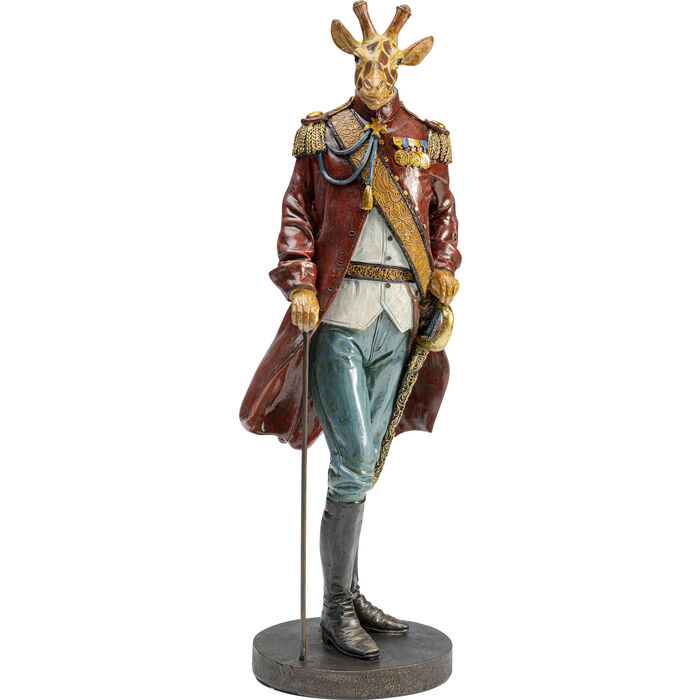 - Ett prydnadsföremål av det kvicka slaget: en giraff i färgglad kostym.
