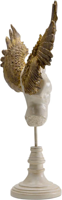 Ta in en himmelsk touch till ditt hem med vår förtrollande skulptur i form av en ängel med gyllene vingar. Denna fantastiska dekoration är ett extravagant blickfång. Med ståtliga, gyllene vingar och en maskulin kropp, inspirerad av antikens Grekland. Denna imponerande byst utstrålar lugn, harmoni och en härlig känsla av extravagans.