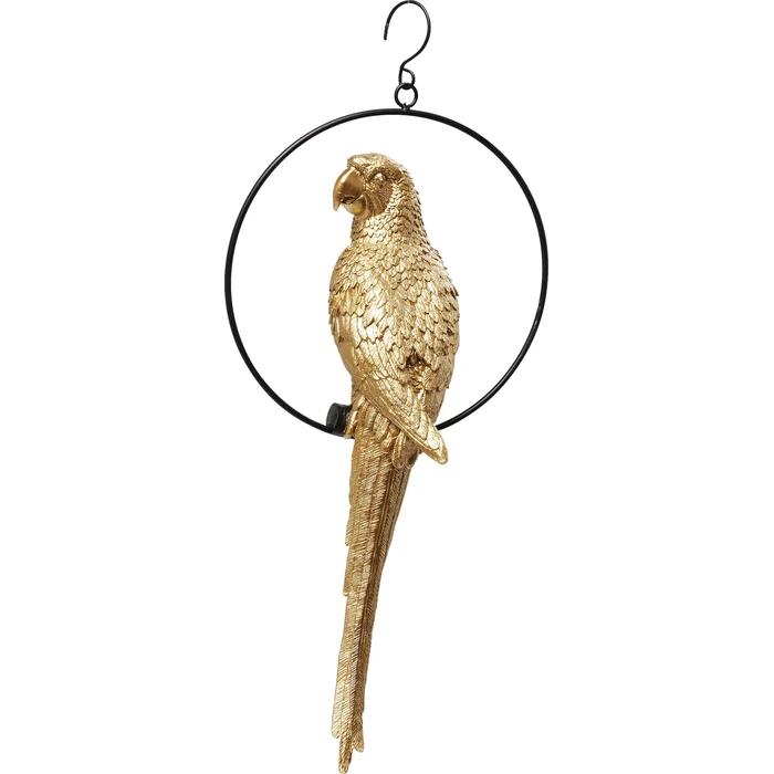 Skulptur Swinging Parrot guld 57 cm är en dekorativ hängande papegoja som sitter på en metallgunga i elegant guldfinish. Den filigrana fjäderdetaljeringen och den skimrande ytan ger skulpturen ett exklusivt uttryck som för tankarna till 1920-talets glamour.