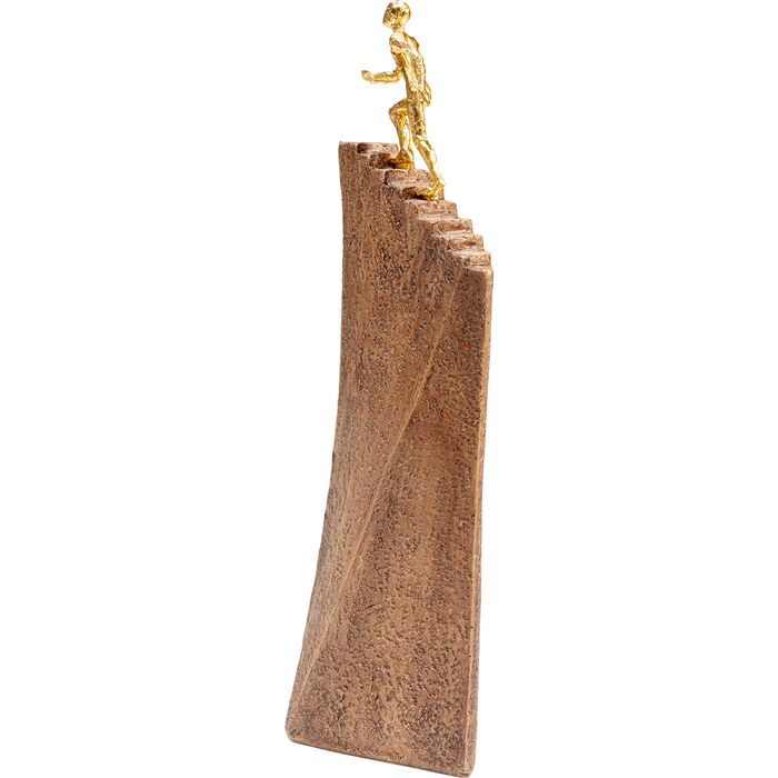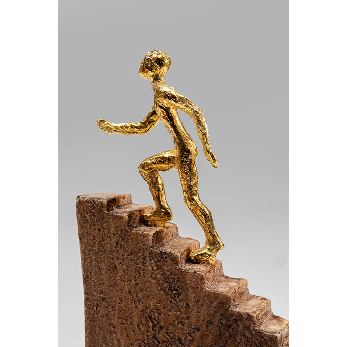 En skulptur föreställandes en figur som med stark uthållighet tar sig framåt och uppåt. En fin symbolik för att uppnå mål och framgångar. Personen på trappan uttrycker styrka, mental och fysisk kapacitet. Med rätt mindset kan du komma långt! En påminnelse om att kämpa på, även när vi stöter på hinder.