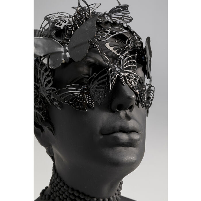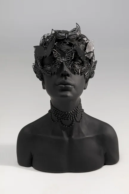 Upplev skönheten och mystiken i vår eleganta skulptur. En fantastisk byst i form av en kvinna med fjärilar som dansar över hennes ansikte. Denna unika och konstnärliga skapelse är en hyllning till kvinnlig skönhet och den förtrollande kraften som finns i naturen. Skulpturen fångar betraktarens uppmärksamhet omedelbart med sitt djärva utseende. Den kvinnliga figuren utstrålar en aura av styrka och självständighet samtidigt som hon är djupt förankrad med naturen. Hennes ansikte är smyckat med vackra fjärilar som omsluter kvinnan och hennes själ. Dessa fjärilar symboliserar inte bara skönheten som finns i naturen, utan är även en symbol för förändring och pånyttfödelse.