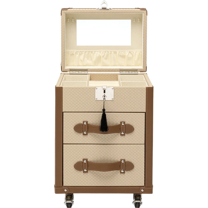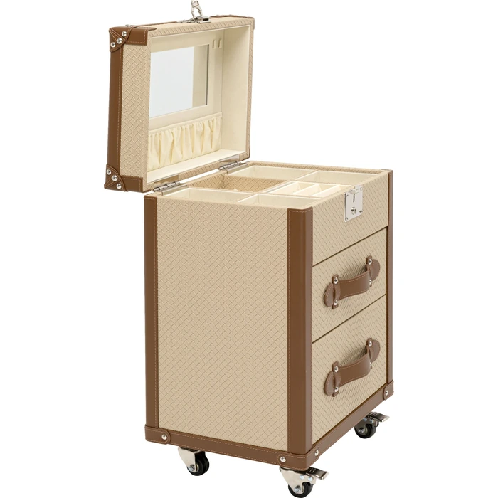 Elegant smyckesskåp i cream med spegeldetaljer och exklusiv finish. En stilfull förvaringsmöbel för smycken och accessoarer.