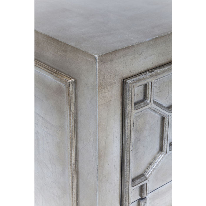 Sängbordet Melody är inspirerat av palatsen i Alhambra - vacker, exotisk och mystisk. Melody har en dov, sober och varm metallic finish som är väldigt smakfull. Varje möbel har en unik patina med lager av tunna metallic-färgade bladskikt som ger en antik, handbearbetad look i front och sidor.