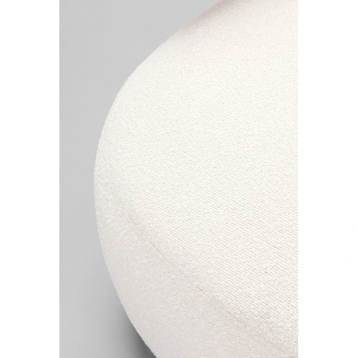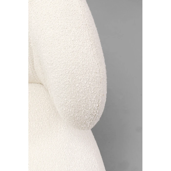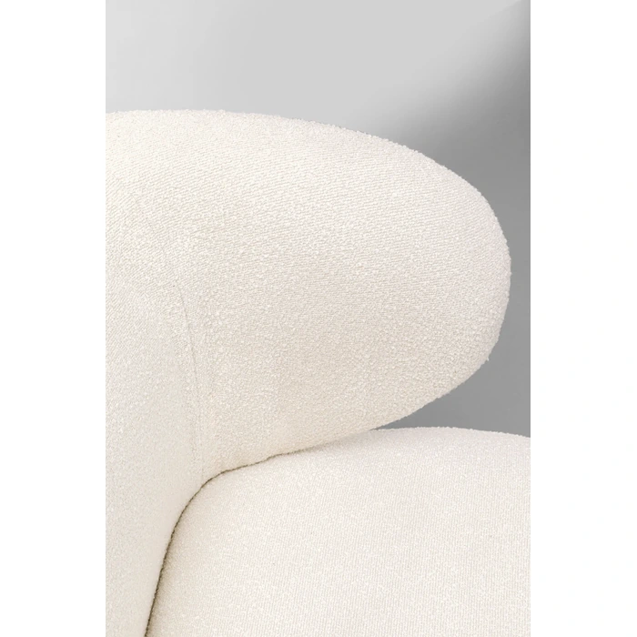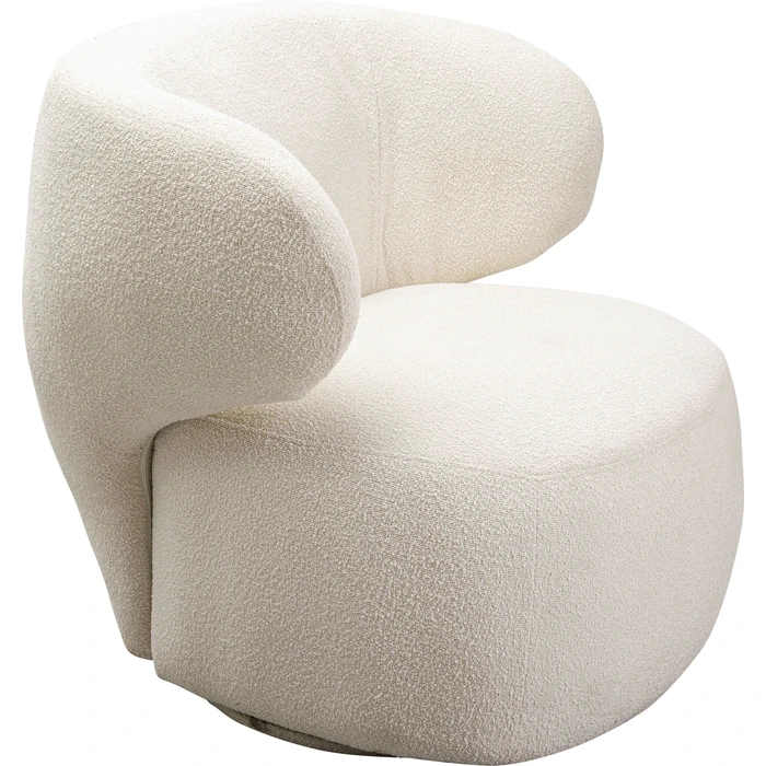 Roterbar fåtölj i cremefärgad bouclé med generös sits – modern komfort och mjukt formspråk.