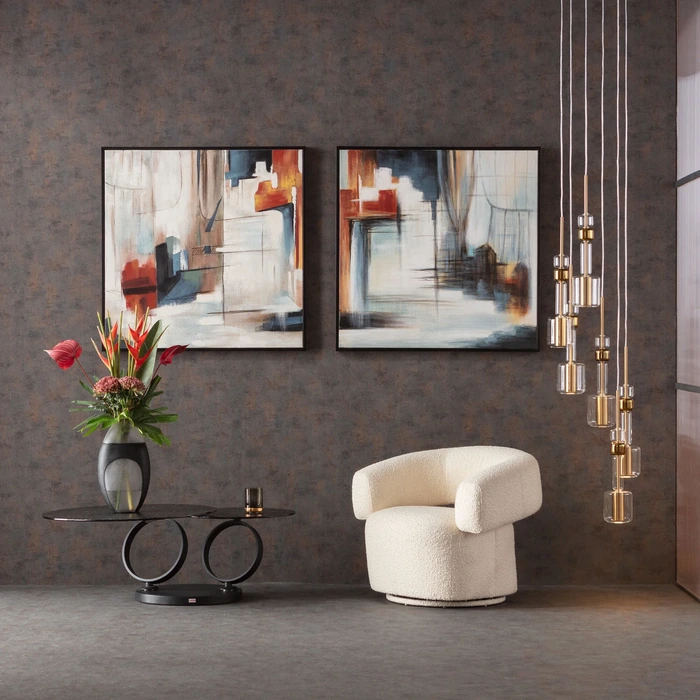 Maye‑formen omfamnar kroppen med en välvd rygg som fortsätter ner i armstöden. Den kompakta storleken gör att fåtöljen ryms där varje centimeter räknas, men komforten är fullvuxen. Bouclén med sina små öglor ger en taktil känsla och nosagfjädringen i sitsen ger följsam avlastning. 360° rotation gör den flexibel i samtalshörnan och enkel att möblera runt.
