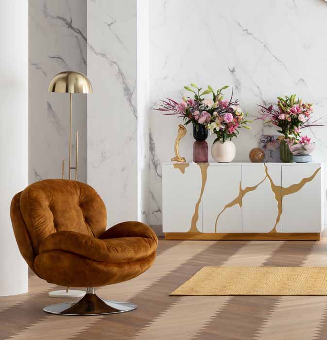 Snurrfåtölj Cosy Amber är en riktigt läcker 70-tals inspirerad snurrfåtölj med alla de rätta elementen för cool modern retro inredning - rund kromad trumpetfot, mjukt stoppning med klädsel i guldgul sammet och djuphäftade klädda knappar. Fåtöljen har en omslutande form för superkomfort! Fint komplement till soffan eller varför inte flera fåtöljer i grupp kring ett runt soffbord - mer loungekänsla kan det inte bli! Roterbar 360° och halkfri non-slip yta under foten. Fåtöljen finns i flera färger! Vi skickar gärna gratis tygprov - kontakta oss på kundtjänst.